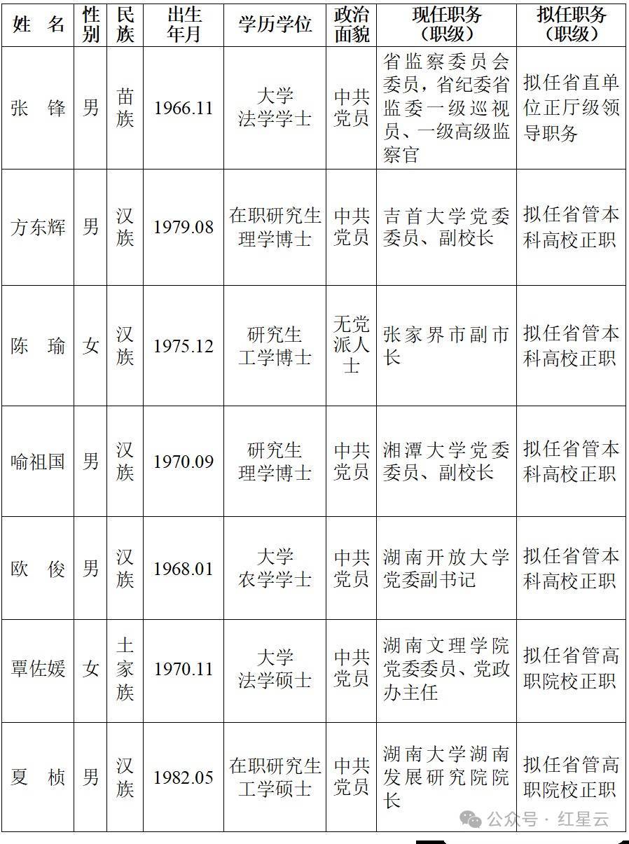 为了加强对干部选拔工作的监督,提高识别和任用干部的准确程度,现对省委常委会会议研究决定的下列拟任人选进行任前公示: